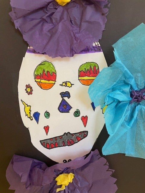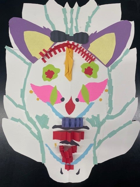As part of Hispanic Heritage month, students learned about Dia De Los Muertos and traditional Mexican folk art. Then, students created their own symmetrical folk masks.