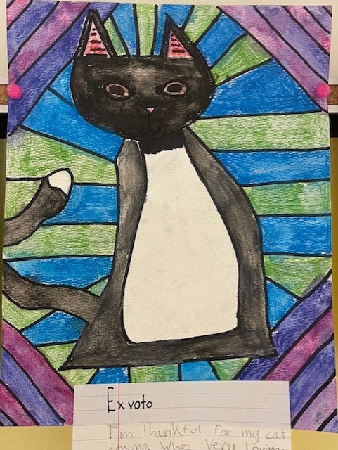 Students studied the history of Ex-Votos in Latin cultures. They then created their own paintings of gratitude.