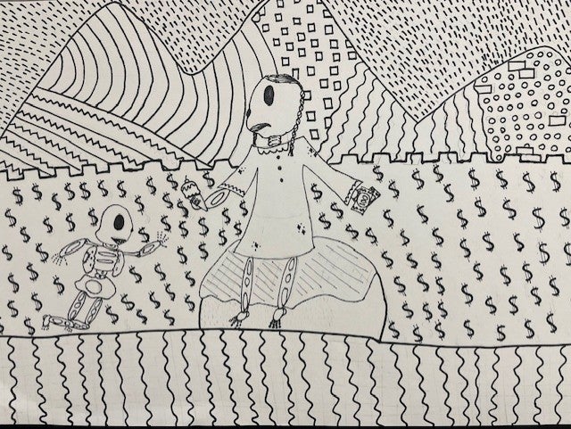 Students studied mentor artist Jose Posada and his use of calaveras/esqueletos in his political satire (the use of humor, irony, exaggeration, or ridicule to expose) to create their own works of art.