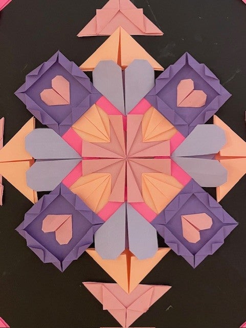 Students studied mentor artist Akira Yoshizawa and learned about radial symmetry. Using 3+ origami techniques, they created their own radial origami sculptures.